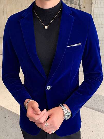 男士商务通勤单排扣西装外套 - 藍色 - 查看 1