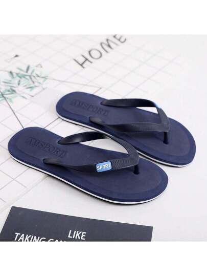 男士人字拖,防滑耐磨舒适拖鞋,休闲简约拖鞋,适合海滩 - 藍色 - 查看 1