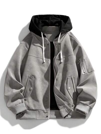 男士宽松连帽摩托车皮夹克,全新秋冬系列 - 灰色 - 查看 10