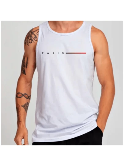 Men's Summer Tank Top Low-Cut T-Shirt Beachwear Gym Light Basic CV015 - 白色 - 查看 1