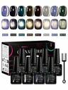 MEET ACROSS 8 件神秘咖啡猫眼凝胶指甲油套装带磁棒,7ml 果冻玻璃珠效果磁性猫眼凝胶抛光,半永久性可去除 UV 凝胶清漆,适合夏季指甲美甲 DIY 适用于家庭和沙龙
