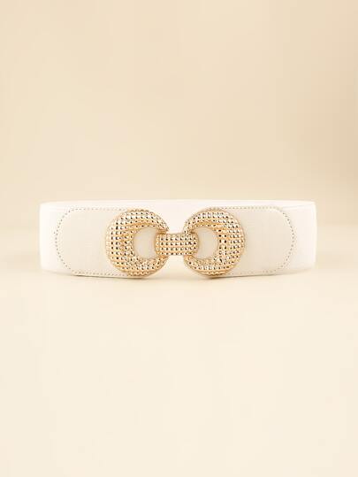 金屬搭扣彈性腰身帶 - 白色 - 查看 1