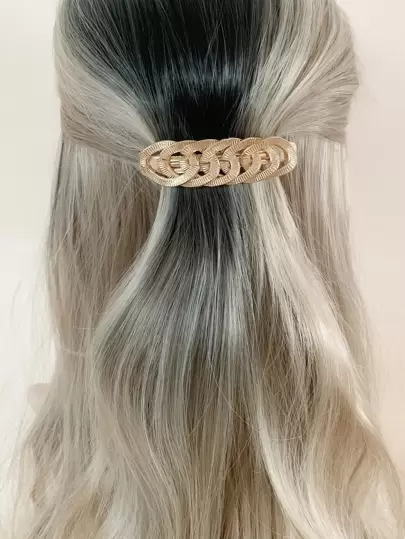 金属链条发夹,适合日常佩戴,打造女孩发型,休闲爪夹,发卡,学习用品,发饰 - 金色 - 查看 1