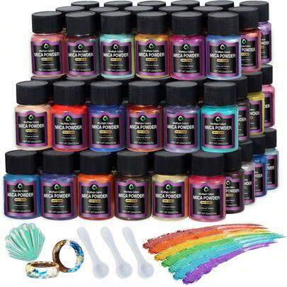 云母粉,24色 - 20毫升/瓶颜料粉,适用于环氧树脂、蜡烛制作、汽车香氛、珠宝制作、绘画染料和工艺美术。 - 24 Colors - 查看 10