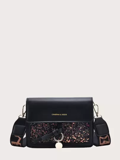 閃亮細節斜背包 - 黑色 - 查看 1