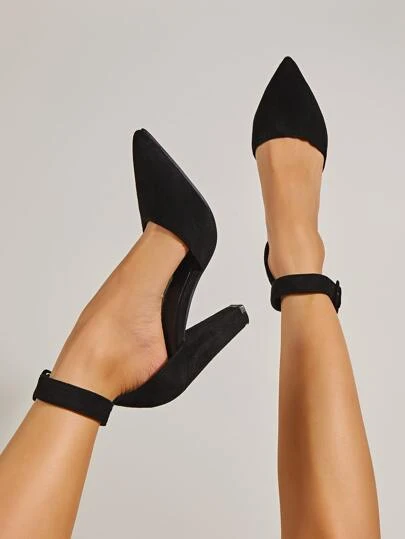 極簡風格踝帶粗高跟鞋 - 黑色 - 查看 1