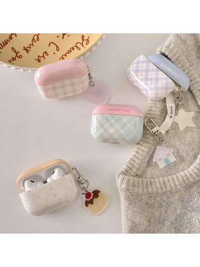 极简拼色格子和波尔卡圆点 3 耳机盒,适合女性,Pro 2,清爽新款 2/3 无线蓝牙耳机保护套,小众风格 - 彩色 - 查看 5