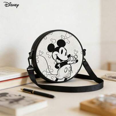 Miniso 迪士尼经典米奇圆形斜挎包,多功能小圆背包,适合休闲旅行、购物,轻便耐用涤纶单肩包,带拉链