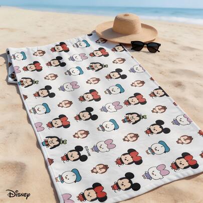 Miniso 迪士尼米奇和朋友们沙滩巾,可爱Q版人物头像印花,超柔软泳池巾,适合夏季度假、海滩、游泳和旅行