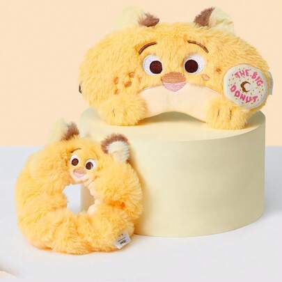 Miniso 迪士尼疯狂动物城尼克和克劳豪瑟3D毛绒眼罩和发圈套装,柔软遮光,适合午睡、旅行和清洗,也适合办公室午睡、出差和居家清洗(1件装)