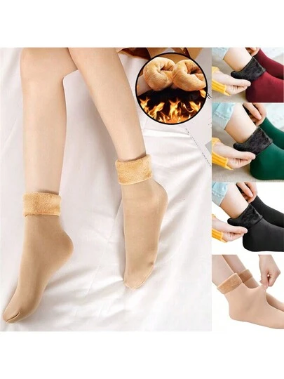 1對女士保暖袜,加厚雪地袜,適用於秋冬季節,抗寒家居地板袜,保暖純色女式家居襪,冬季舒適中筒襪 - 彩色 - 查看 10