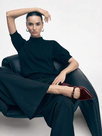 Mnmlis 女士通勤时尚尖头平底鞋 - 酒紅色 - 查看 10
