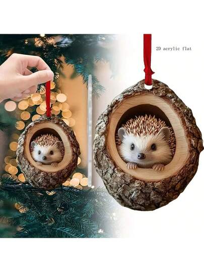 现代2D扁平亚克力刺猬圣诞树挂饰 - 椭圆形节日吊坠,无需电源,易于悬挂 - 适用于圣诞节、万圣节、复活节和感恩节的节日装饰 | 动物造型家居及派对悬挂装饰,节日装饰品 - 彩色 - 查看 1