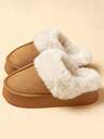 1双棕色圆头套脚毛绒人造毛皮拖鞋,女士款,毛绒内里,人造毛皮饰边,时尚设计,加厚鞋底增高3厘米,男女通用,室内居家卧室办公室休闲穿着,经典男士拖鞋,舒适防滑保暖,适合户外穿着,生日、圣诞节、万圣节的绝佳礼物(轻便,尺码偏小)