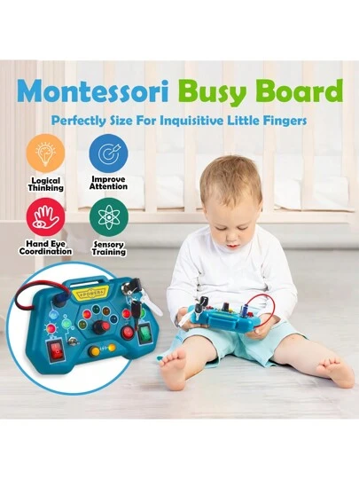 蒙特梭利幼兒忙碌板玩具3歲以上男女寶寶禮物,教育學習玩具幼兒旅行玩具 - 藍色 - 查看 1