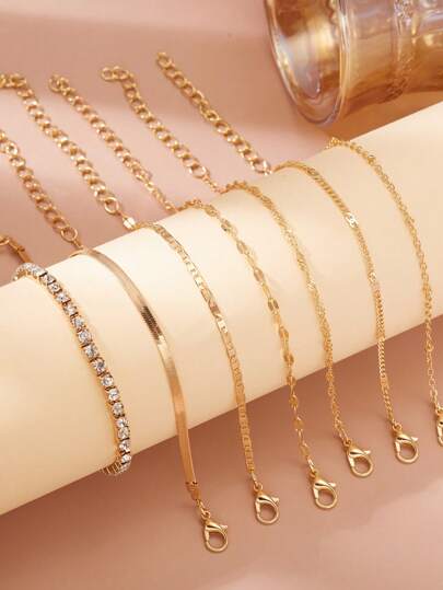 7入組簡單和時尚和優雅爪和水鑽裝飾手鏈套裝,日常穿著 - 金黃色 - 查看 1