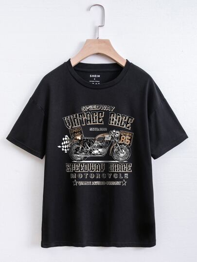 INAWLY 摩托車和字母圖案T恤 - 黑色 - 查看 1