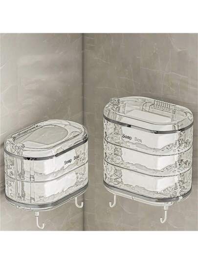 多层旋转肥皂盒壁挂式浴室收纳架,排水肥皂架,透明返校 - 無色 - 查看 1