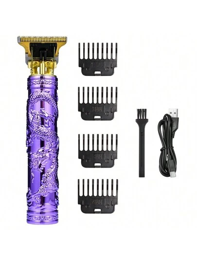 男士多功能电动剃须刀,带剃须刀,T9 USB 充电式男士电动理发器理发器剃须刀专业理发器胡须剪,送给男士的精美礼物,男士美容套装 - 紫色 - 查看 1