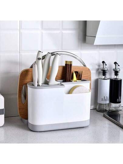 多功能刀座帶切菜板廚房收納收納架適用於,筷子,鍋蓋子 - 灰色 - 查看 1