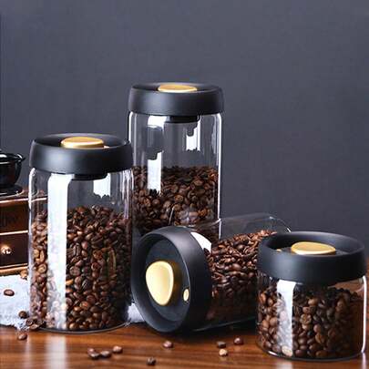 多种尺寸玻璃真空密封储物罐,食品储物罐和咖啡豆真空罐(带泵),适用于食品储藏室储物架,厨房台面装饰,多功能密封容器,适用于谷物和干货,防潮,方便厨房收纳整理 - 彩色 - 查看 1