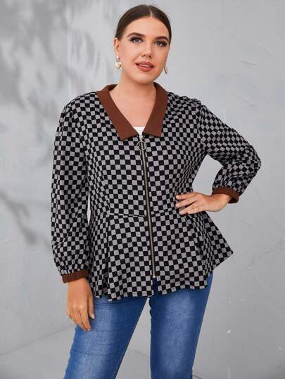 Mulvari 大碼棋盤格拼接邊褶皺夾克 - 彩色 - 查看 1