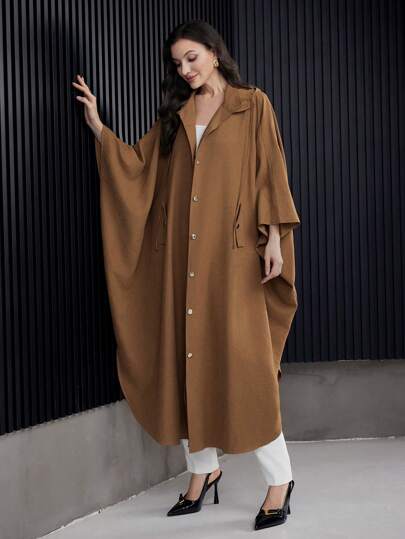 Mulvari 连肩袖连帽开衩下摆大衣,秋冬季常规外套 - 咖啡棕 - 查看 1