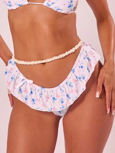 Musera Resort 小碎花荷叶边腰部比基尼泳裤,适合夏季海滩度假和春季海滩度假。 - 彩色 - 查看 1