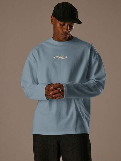 Musero 男士宽松圆领印花长袖上衣 春夏款 - 霧霾藍 - 查看 1