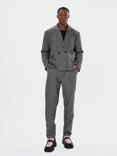 Musero 锥形粗花呢西装裤 - 黑與白 - 查看 5
