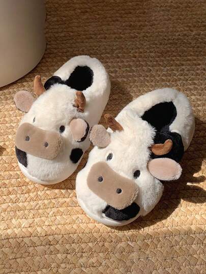 柔軟可愛的奶牛主題女士拖鞋,適用於女生宿舍的冬季時尚保暖室內鞋 - 黑與白 - 查看 4