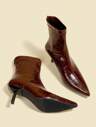 女士棕色踝靴和短靴,粗跟 6 厘米高跟粗跟铁头短靴,后拉链