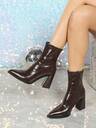 女士棕色踝靴和短靴,粗跟 6 厘米高跟粗跟铁头短靴,后拉链