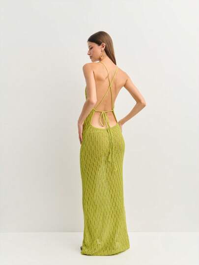 Nöista 度假海滩纯色挂脖露背连衣裙 - 綠色 - 查看 6
