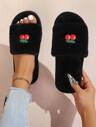 女士秋冬心形装饰软底室内拖鞋,轻便舒适,毛绒衬里,休闲家居拖鞋