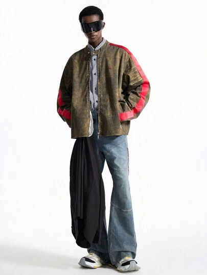 NEON BLANC 男士街头时尚黑色牛仔长袖夹克,适合秋冬 - 黑色 - 查看 6