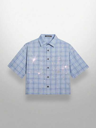 NEON BLANC 男士街头时尚编织水钻蜘蛛网格子短袖衬衫 - 紫色 - 查看 1