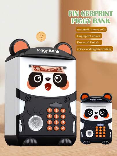 NEUSNEY 1 件熊猫形电子存钱罐玩具,儿童 ATM 硬币盒,带指纹解锁,自动卷起硬币,创意学习金融玩具,适合 3 岁以上男孩和女孩,需要 3 节 AAA 电池(不包括在内),包含一些随机配件 - 黑與白 - 查看 7