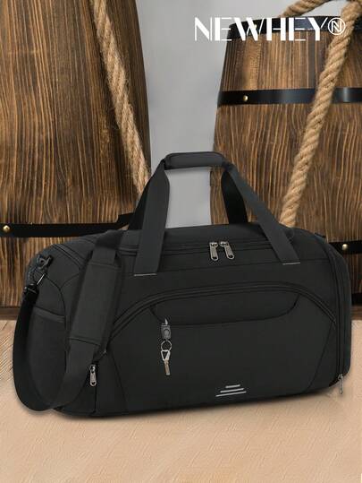 NEWHEY 男士运动健身包,带鞋仓,旅行手提包,大容量防水游泳周末过夜旅行包,55升 - 黑色 - 查看 10