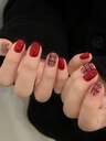 情人节美甲套装,24片短款杏仁形酒红色假指甲,包含1个指甲锉和1张凝胶指甲贴纸,美甲护理配件