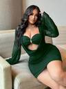 NU&NOW 大码女式纯色蕾丝拼接性感优雅开衩紧身吊带连衣裙