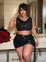 NU&NOW 两件套性感网纱亮片吊带背心和迷你裙套装,时尚假日/情人节服装