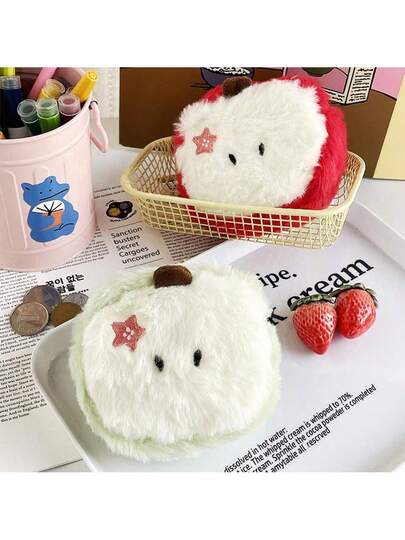 NYXIA 1/2件卡哇伊卡通苹果毛绒零钱包女孩可爱毛绒零钱包钥匙收纳袋节日派对礼物迷你钱包夏季 - 彩色 - 查看 6