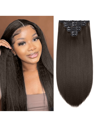 6件套闪亮发饰夹式23.6英寸亮片发饰接发夹式发饰套装,耐热闪亮仙女发饰,女士适用(银色)