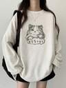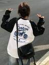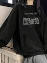女式宽松休闲百搭日文字母图案印花圆领运动衫,秋冬款