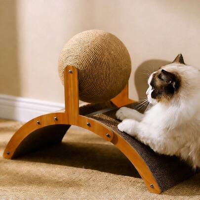 天然黄麻绳猫抓球,训练猫抓玩具,双面猫抓板带剑麻球,适合室内猫 - 棕色 - 查看 6