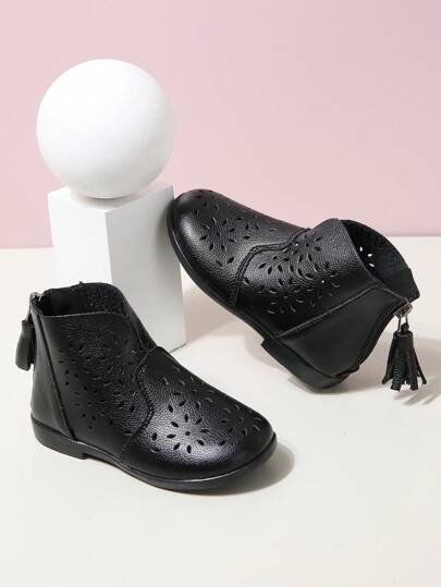 全新女童拉鍊靴黑色 - 黑色 - 查看 1