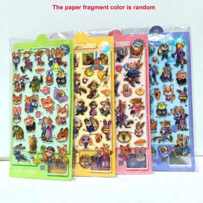 全新卡通动物城市系列注水糖果贴纸,可爱朱迪和尼克贴纸,卡通动物食物玩具水晶贴纸,可爱小猫、甜点、小狗卡通动物装饰贴纸 - 彩色 - 查看 1