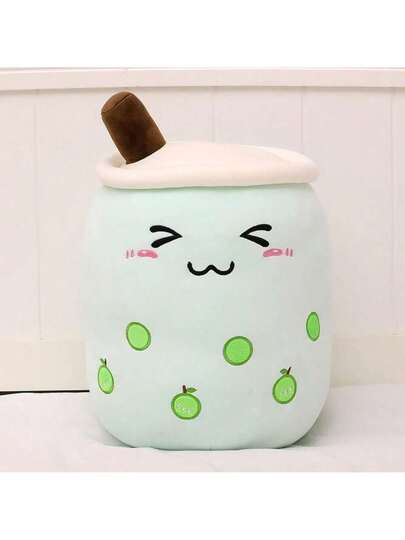新創意假珍珠奶茶表情抱枕公仔,可愛奶茶杯布娃娃毛絨玩具裝飾禮物 - 蘋果奶茶瞇眼表情 - 查看 1