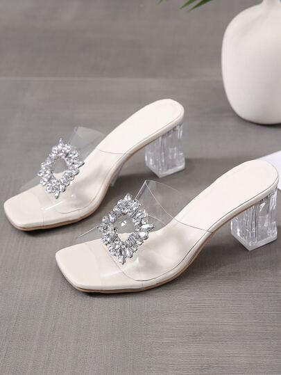 全新时尚夏季女士透明高跟拖鞋凉鞋 - 無色 - 查看 1